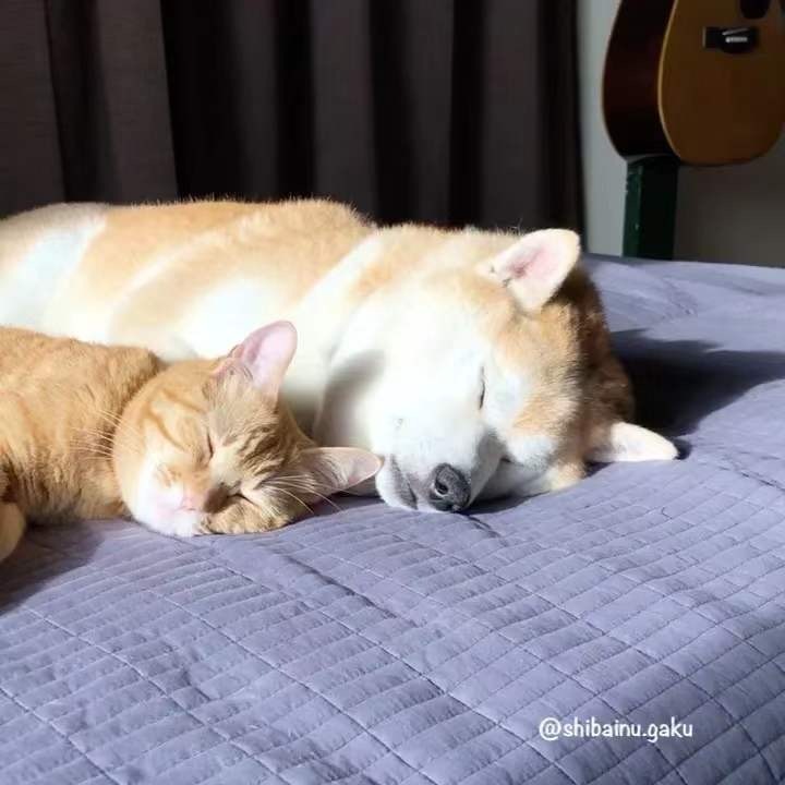 和猫咪超亲的日本阿柴宝宝 可可爱爱