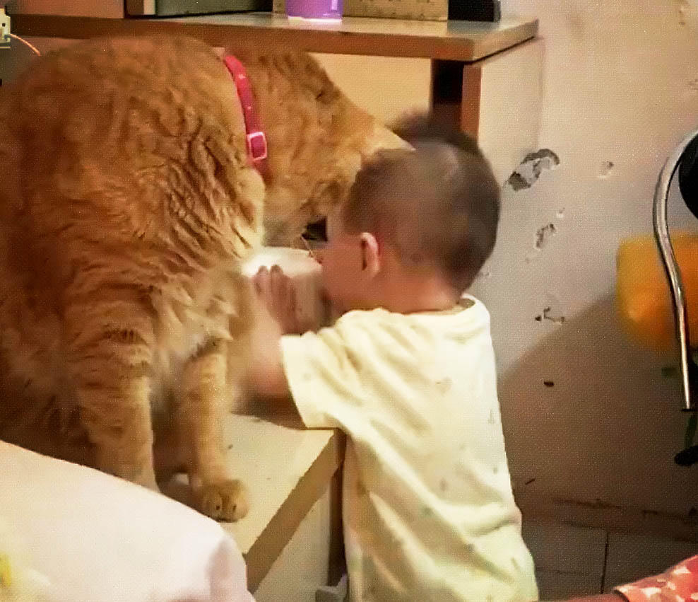 3岁孩子和猫咪玩游戏 橘猫的疯狂举动 让人笑到喷饭 主人