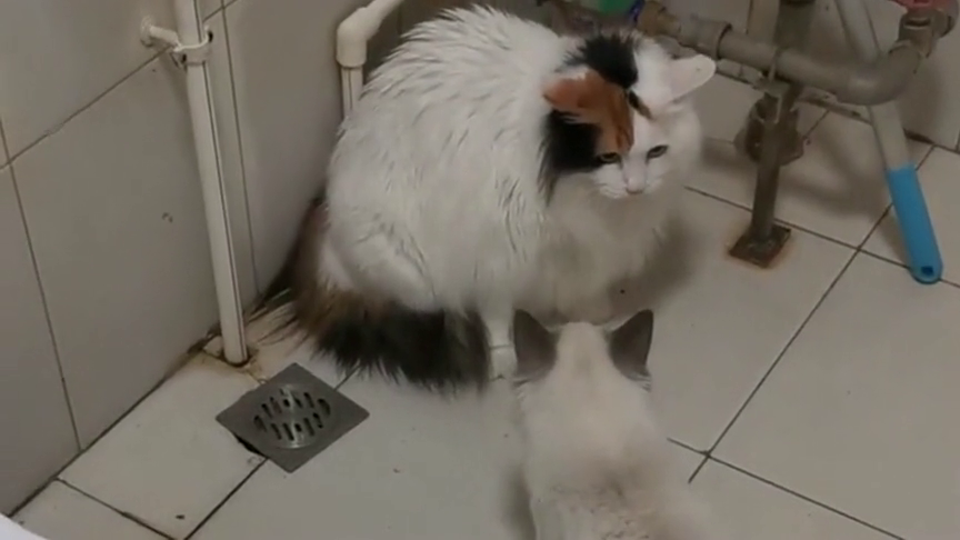 我家四岁的猫 被新来的4个月小猫 吓到角落不敢动 为什么呢