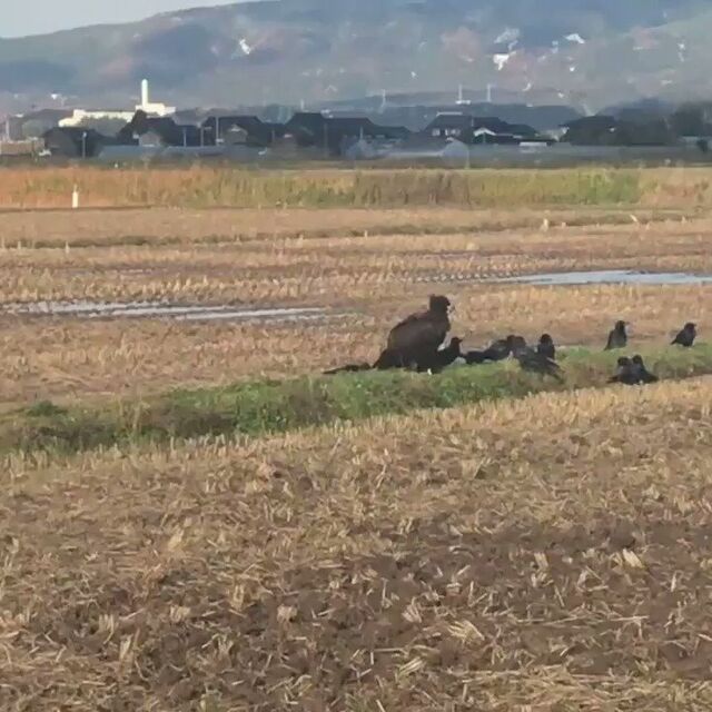 佐渡島 田んぼの真ん中で鳥の着ぐるみを着た人がカラスと戯れてるのかと思ったら本物のどデカい鳥だった 王様って感じ さすが佐渡だ Togetter