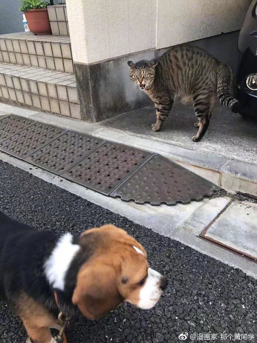 推主nanairo Perikan出门遛狗遇到一只猫 遛狗 猫 样子 新浪新闻