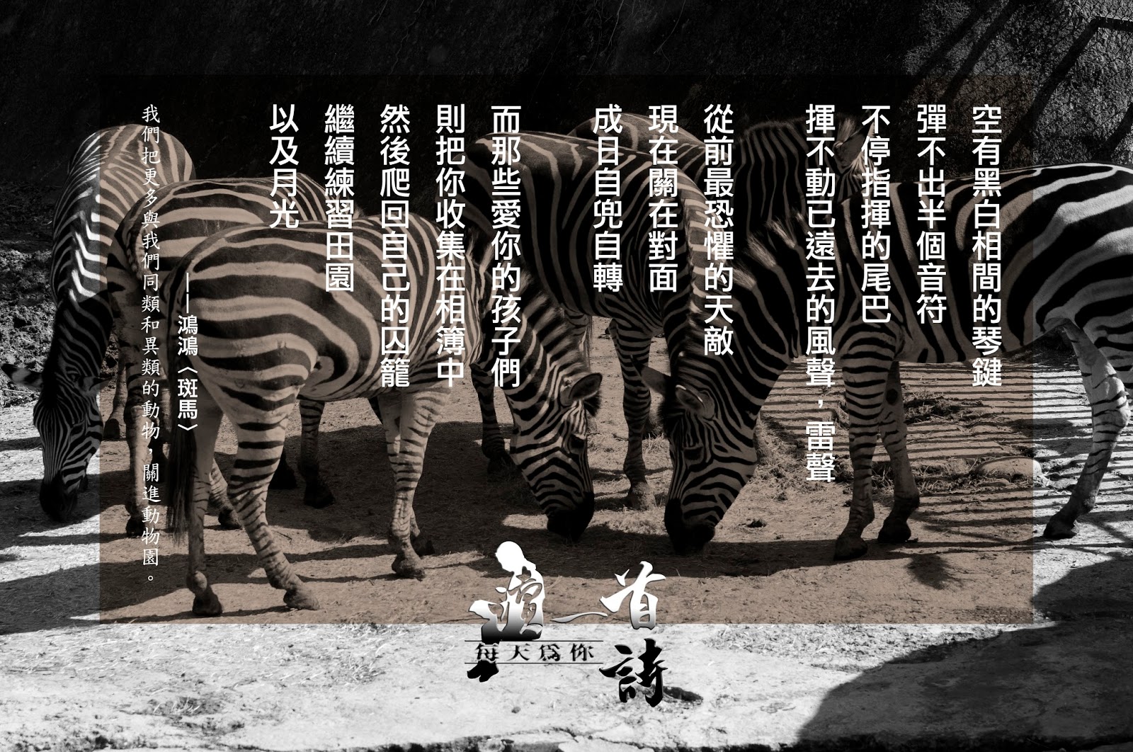 每天為你讀一首詩 斑馬 我們把更多與我們同類和異類的動物 關進動物園 鴻鴻