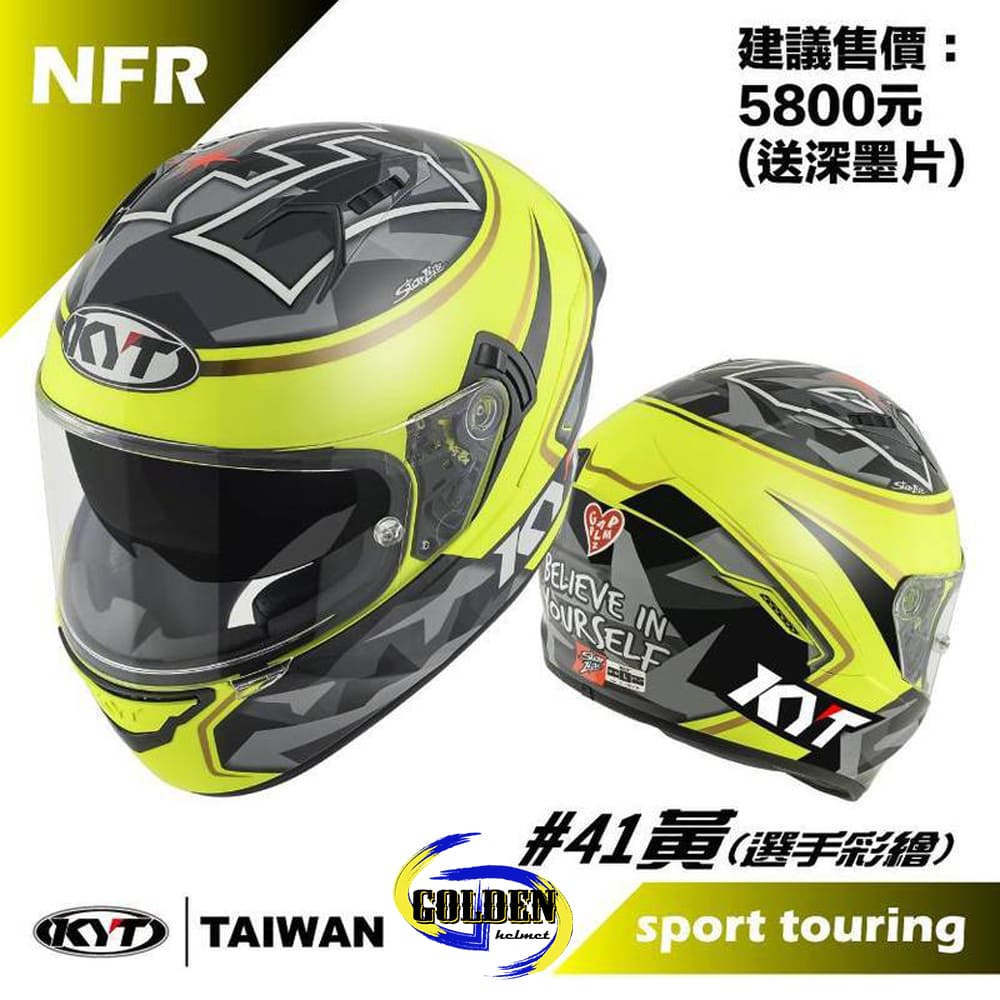 Kyt Nfr 41 消光黃選手彩繪全罩式安全帽 內藏墨鏡 送墨片 少量庫存下單前請先向line確認尺寸庫存 Gd佳德騎士俱樂部
