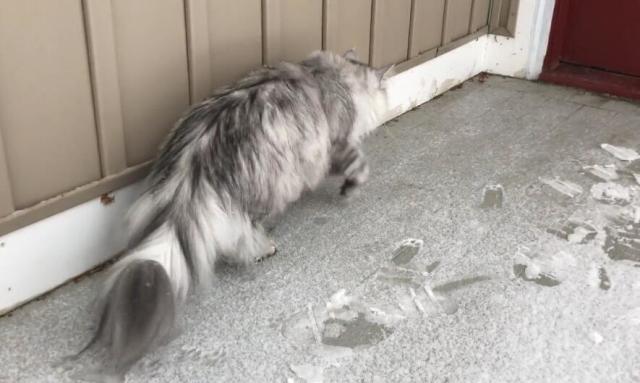 大雪天邻家猫咪蹲门口找自家猫吵架 嗷嗷叫得不可开交 每日头条
