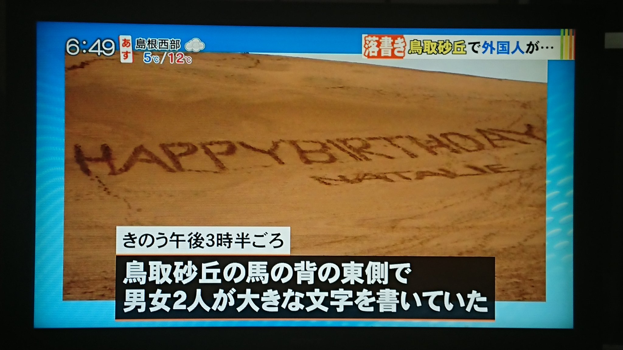 Happy Birthday 鳥取砂丘に条例禁止の巨大な落書き Nhkニュース ニュートピ Twitterで話題のニュースをお届け