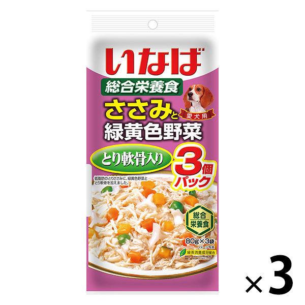 いなば 犬用 ささみと緑黄色野菜 とり軟骨入り 80g 3個パック 6袋入り ドッグフード ささみと緑黄色野菜 チャーム