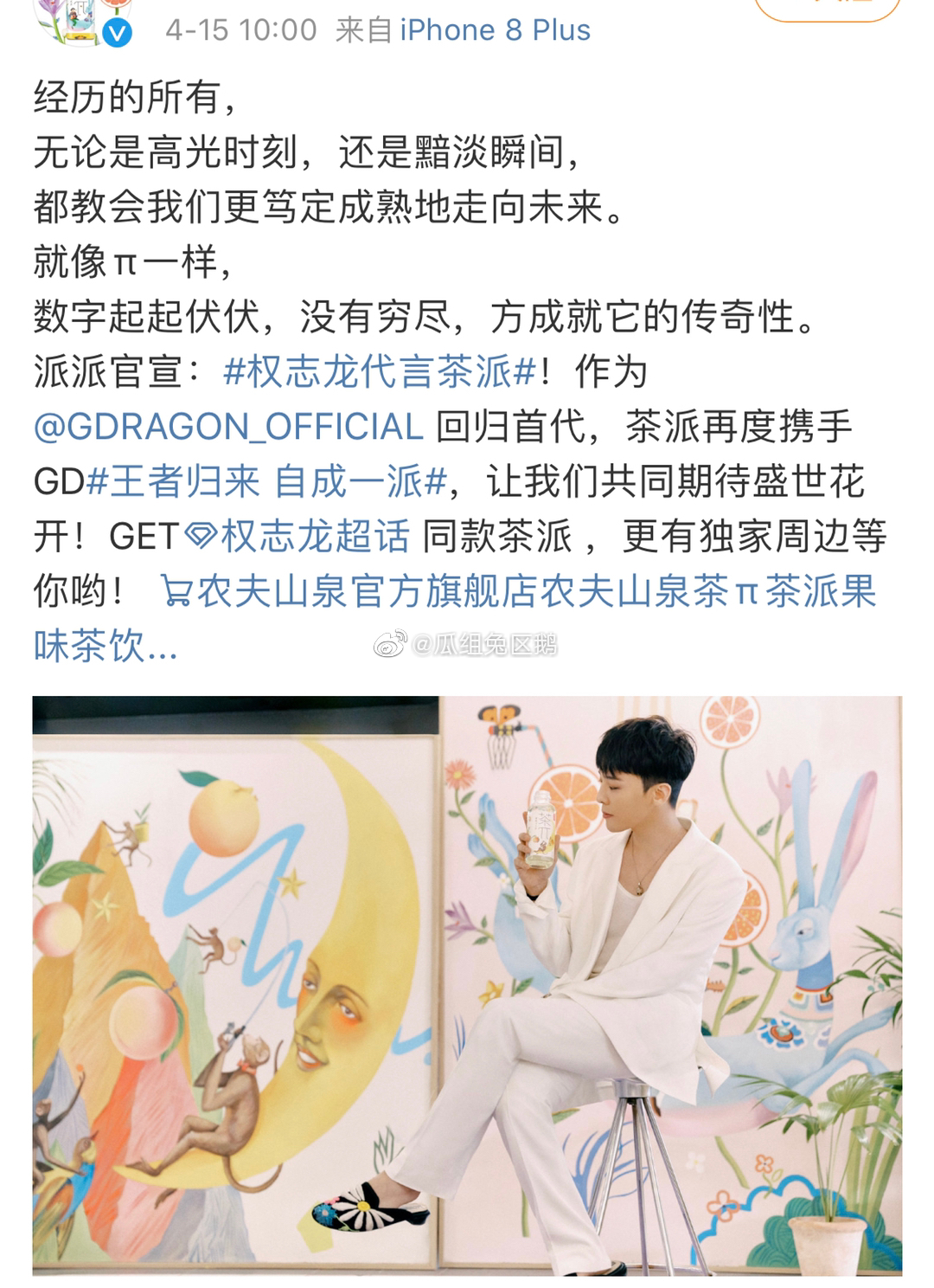 权志龙再次成为茶派品牌代言人 花开了 那个男人回来了
