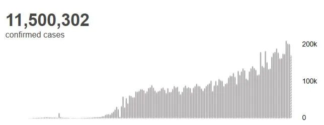 单日新增确诊超20万例 全球将再次回到封锁状态 病例