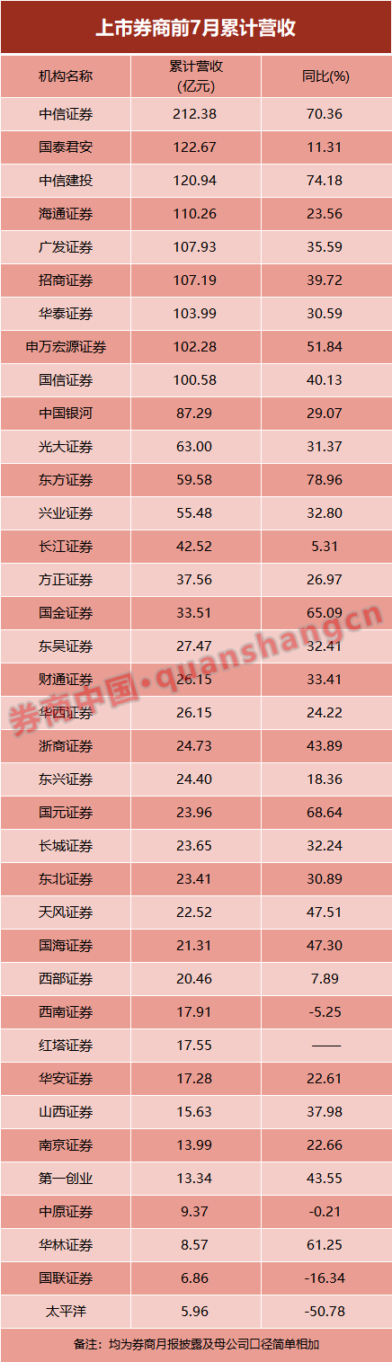35家上市券商7月大賺215億15家凈利增幅超100 壹讀