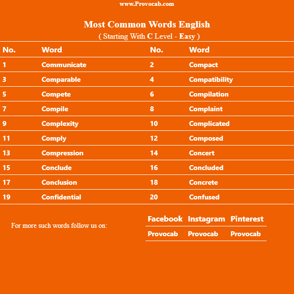 270 Most Common English Words Starting With C Level Easy Synonyms Related Words Examples
